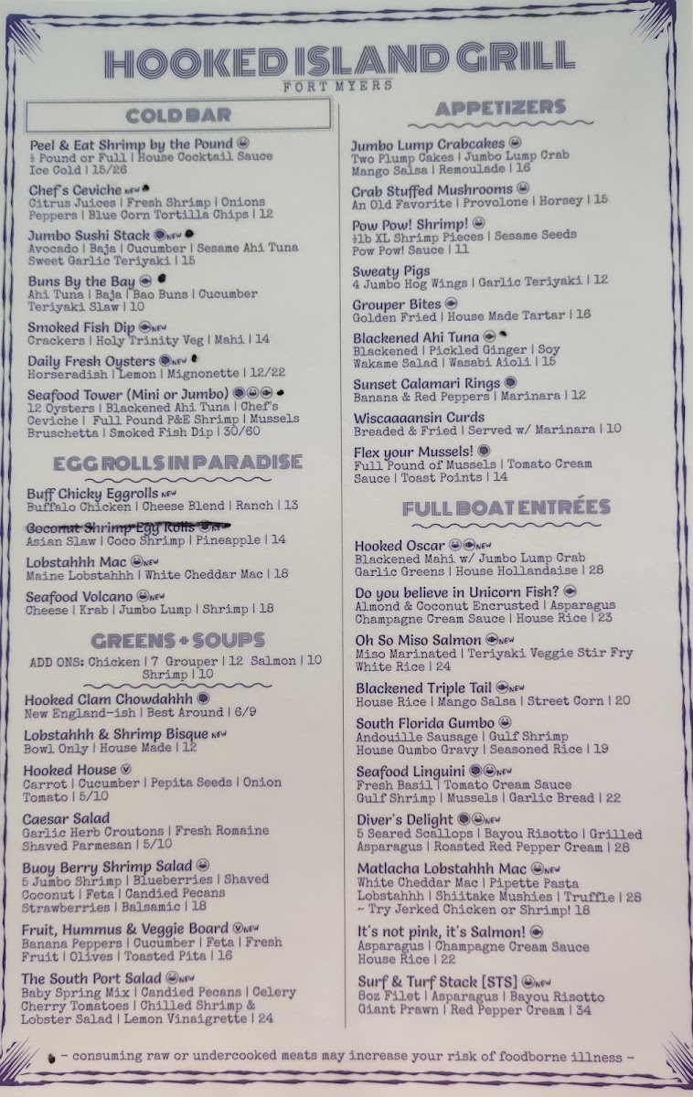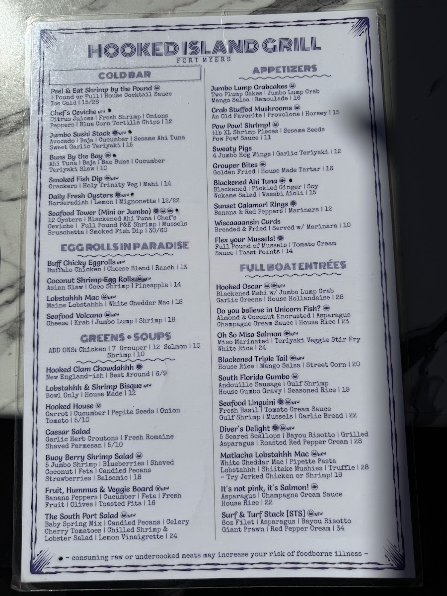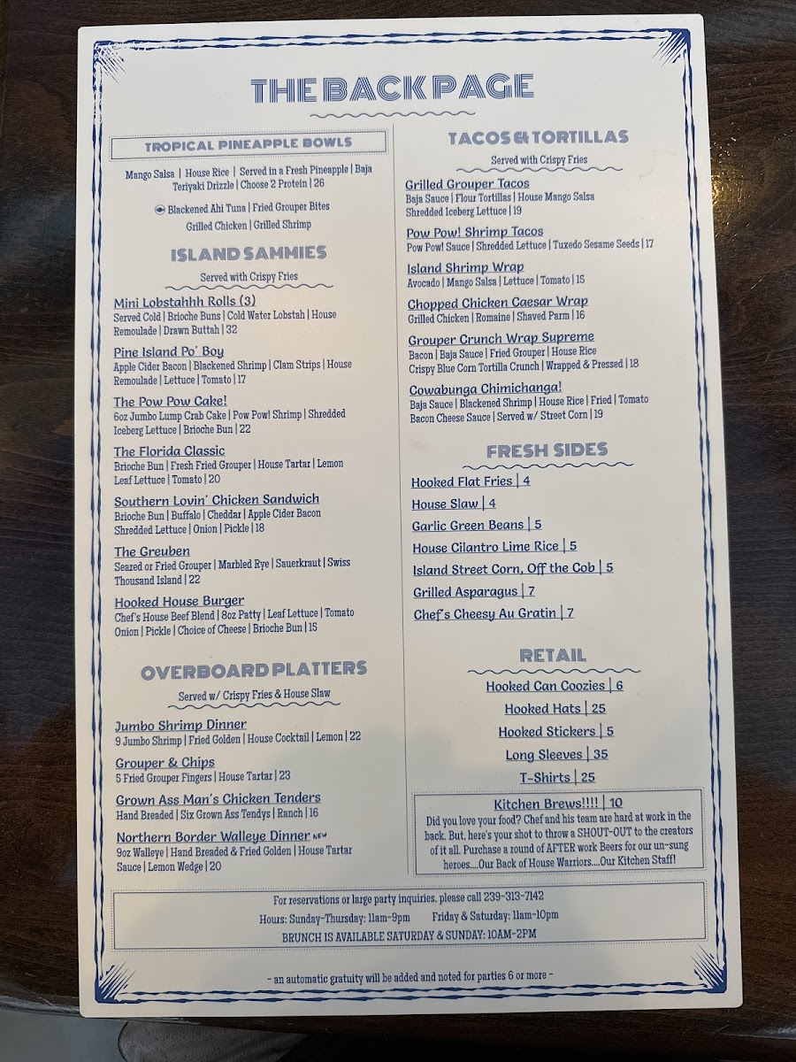 Welcome to Hooked Island Grill in sunny Fort Myers, Florida, a seafood haven that promises an unforgettable dining experience. Located at 9924 Gulf Coast Main St Ste 130, this vibrant eatery captures the essence of coastal dining with a laidback atmosphere enhanced by beachy decor. From the moment you step inside, the welcoming vibe and friendly staff will make you feel right at home.